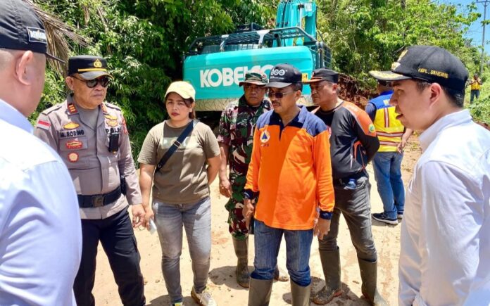 Manadoline.com, Sangihe- Cuaca ekstrem yang melanda wilayah Kabupaten Kepulauan Sangihe mengakibatkan tanah longsor Kecamatan Tamako pada Jumat (5/9/2025), Terkait hal ini Pemerintah Kabupaten Kepulauan Sangihe yakni Bupati Michael Thungari bersama Wakil Bupati Tendris Bulahari, didampingi Sekretaris Daerah Melanchton Harry Wolff, Kapolres Kepulauan Sangihe AKBP Abdul Kholik, turun langsung serta sejumlah pejabat terkait meninjau lokasi terdampak.