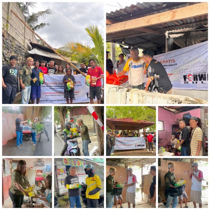 MANADO-Pembagian pangan gratis, Senin (15/9/2025) sukses dilaksanakan oleh Forum Wartawan DPRD Sulut (FORWARD) dengan mengumpulkan ratusan warga, cleaning servis, sopir, security di rumah Rakyat Kantor DPRD Sulut, dalam rangka menyambut HUT Provinsi Sulut ke 16 Tahun.