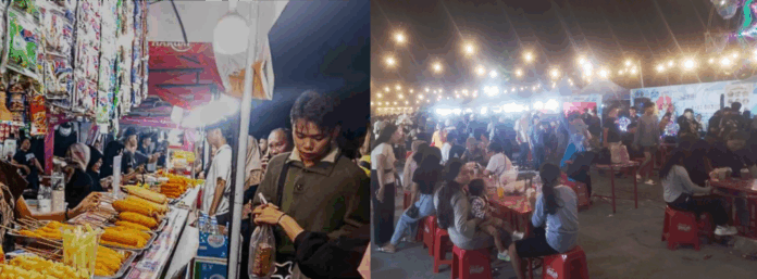 Terpantau kawasan kuliner produk lokal dari pelaku Usaha UMKM jadi sasaran pengunjung sambil menikmati berbagai suguhan hiburan, kuliner, produk lokal dari pelaku Usaha Mikro, Kecil, dan Menengah (UMKM), serta beragam wahana permainan yang menambah keseruan malam.