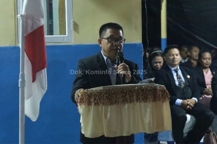 SITARO — Staf Ahli Bupati Bidang SDM dan Kemasyarakatan, Hendrik Lamamentik, mewakili Pemerintah Kabupaten Kepulauan Sitaro menghadiri ibadah syukur peresmian dan penetapan gembala Gereja Bethel Indonesia (GBI) Gosyen Laghaeng, Rabu (15/10/2025).