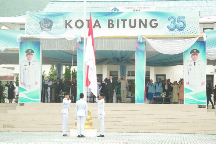 Upacara dihadiri oleh Wakil Wali Kota Randito Maringka, bersama Istri tercinta, Ny. Jacinta Marybell Maringka Gumolung, Unsur Forkompinda, para veteran perjuangan, serta jajaran Kepala Perangkat Daerah (KPD) Kota Bitung.
