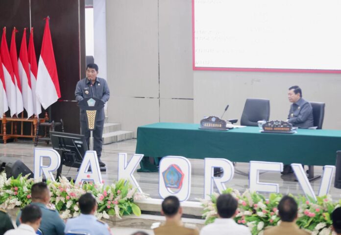 MANADO — Gubernur Sulawesi Utara, Mayjen TNI (Purn) Yulius Selvanus, didampingi Wakil Gubernur Victor Mailangkay, memimpin langsung Rapat Koordinasi Evaluasi (Rakorev) pelaksanaan Rencana Kerja Pemerintah Daerah (RKPD) hingga Triwulan III Tahun 2025, Selasa (25/11/2025).